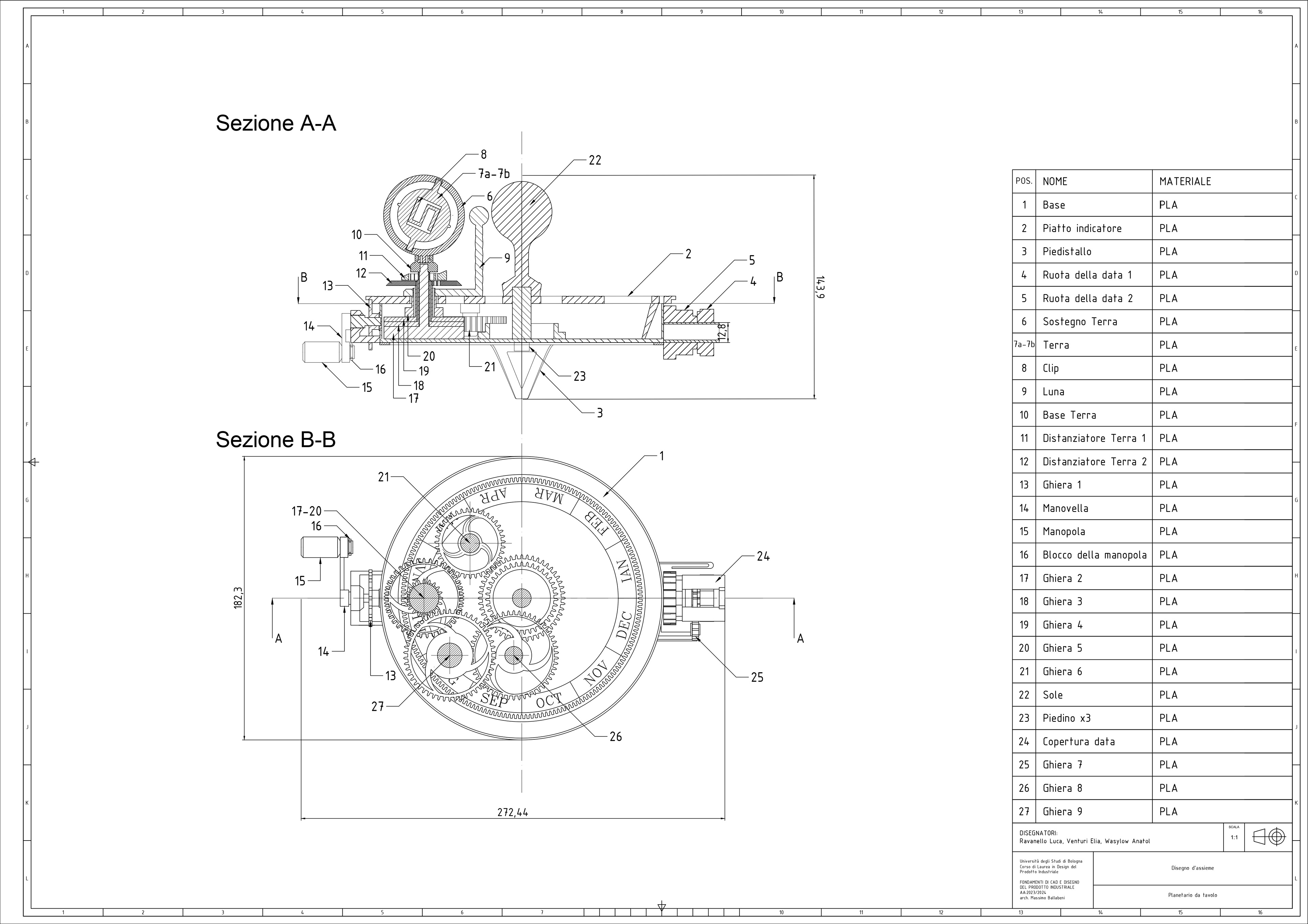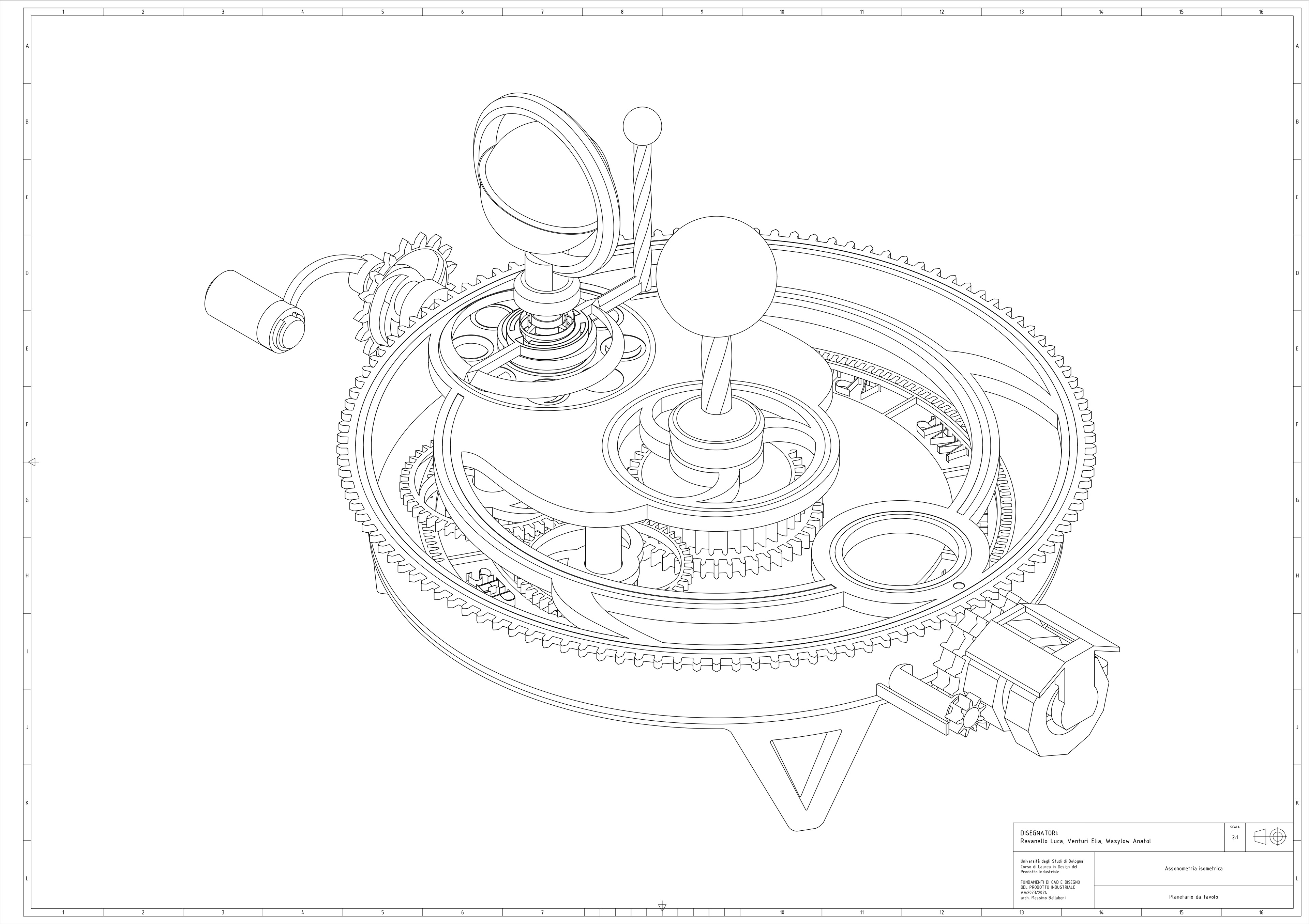 During the "AutoCAD Fundamentals" course my colleagues and I were asked to create some technical drawings of an already existing object. This is why we chose a mechanical table planetarium.